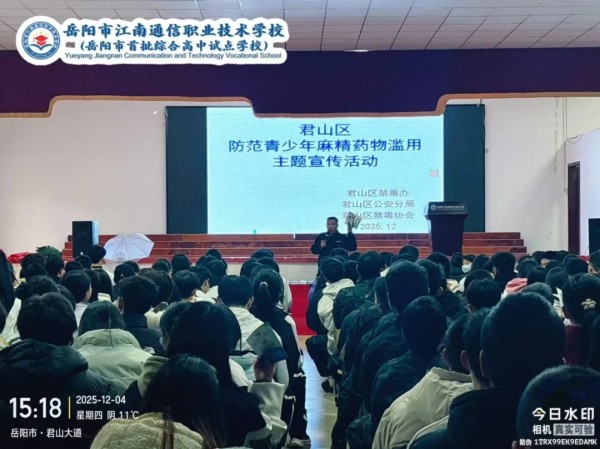 為切實(shí)加強(qiáng)青少年毒品預(yù)防教育,提升學(xué)生識(shí)毒、防毒、拒毒意識(shí)與能力,12月4日,君山區(qū)禁毒辦攜手君山區(qū)公安分局禁毒大隊(duì)、君山區(qū)禁毒協(xié)會(huì),共同走岳陽市江南學(xué)校開展主題鮮明、形式多樣的禁毒宣傳活動(dòng),為全校師生筑起一道堅(jiān)實(shí)的“無毒”青春防線。